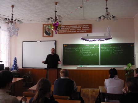 23 декабря 2014 г. в школе №3 имени А.С.Макаренко прошел классный час, участниками которого стали Благочинный Фроловского округа отец Аркадий (Власов) и учащиеся 10-11 классов. О чем можно разговаривать 2 часа подряд? Что сблизило поколение отцов и детей? Какая тема вызвала неподдельный интерес молодежи?