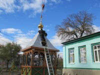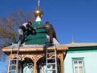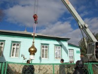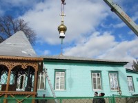 Поднятие и установка купола на звонницу храма прп. Сергия Радонежского