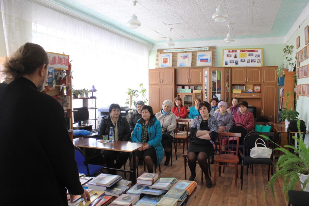 Затем батюшка провел интересный и емкий обзор по книгам и брошюрам, которые можно было приобрести для себя и своих близких. Большой выбор православной литературы удовлетворил запросы всех присутствующих на встрече. Фонд Терновской библиотеки, также был пополнен несколькими экземплярами книг, которые отец Аркадий оставил в дар сельским читателям.