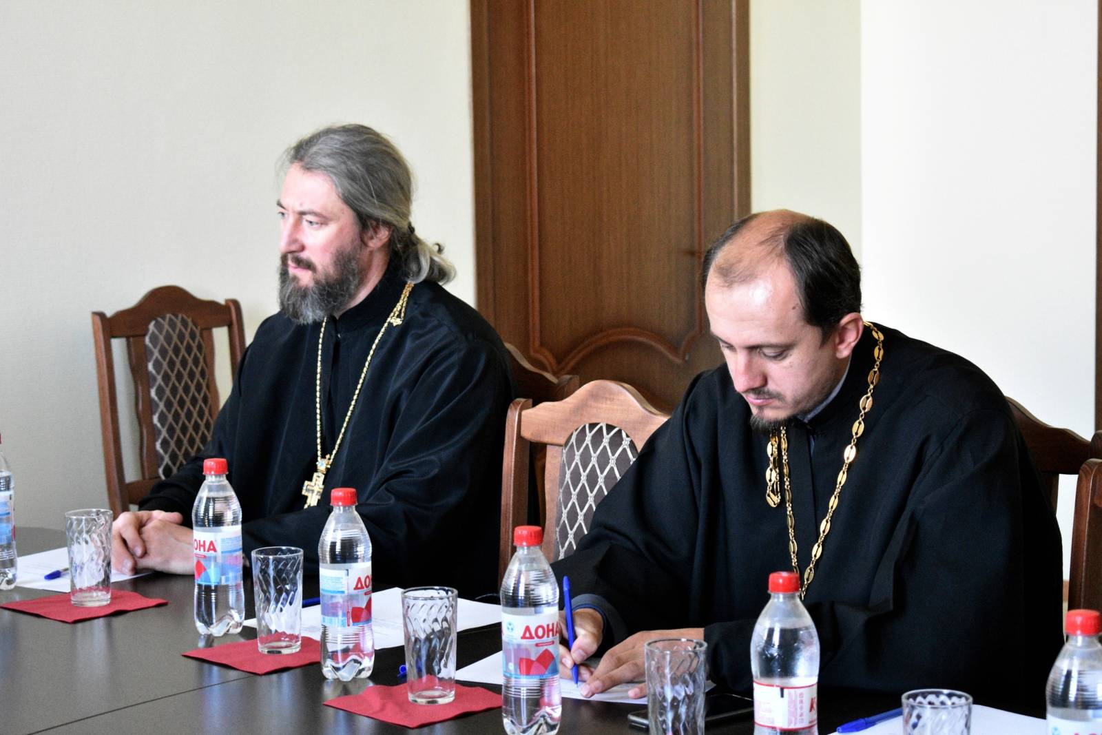 Руководитель епархиального отдела религиозного образования и катехизации протоиерей Константин Зелинский доложил о ходе подготовки к Покровскому хоровому собору для девочек, который состоится 11 октября в г. Серафимовиче и Усть-Медведицком Спасо-Преображенском женском монастыре. Также шла речь об организации благочиннических этапов Рождественских образовательных чтений и о необходимости активизации работы воскресных школ, как детских, так и взрослых.