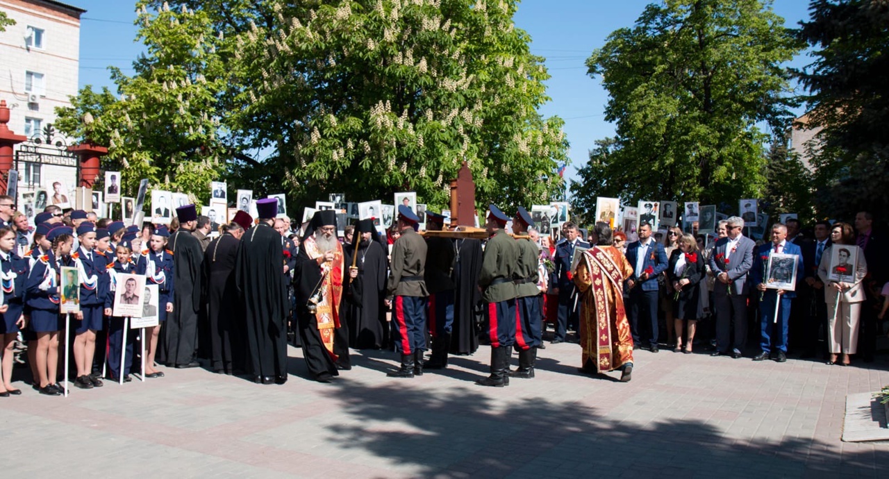 Завершилось шествие в сквере Павших Борцов, где у «Огня славы» епископ Елисей в сослужении городского духовенства совершил заупокойную литию по убиенным за Отечество и веру, умершим от голода и холода, скончавшимся в лагерях и всем, кто потрудился ради Победы. Затем состоялось возложение цветов к мемориалу.
