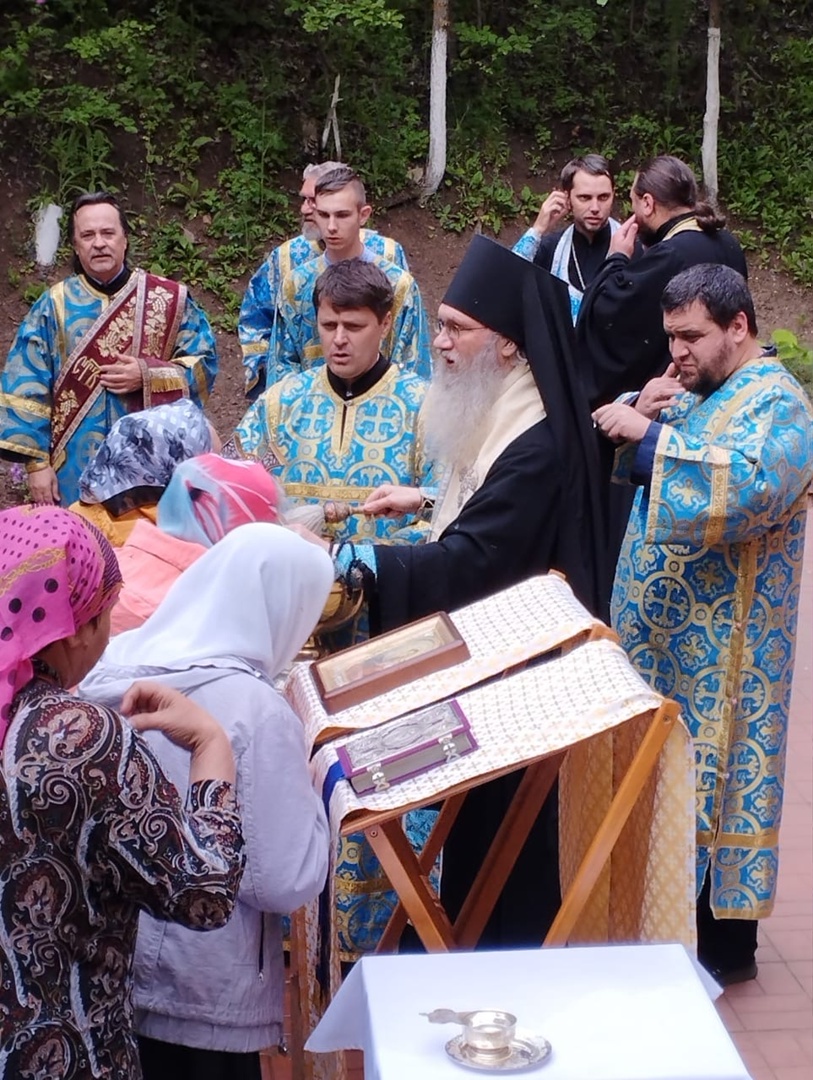 Вечером 5 июня, епископ Урюпинский и Новоаннинский Елисей совершил молебное пение с чтением акафиста Урюпинской иконы Божией Матери и малое освящение воды на месте явления чудотворного образа на Святых горах.